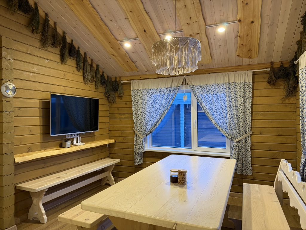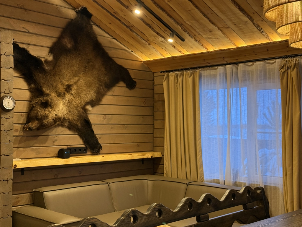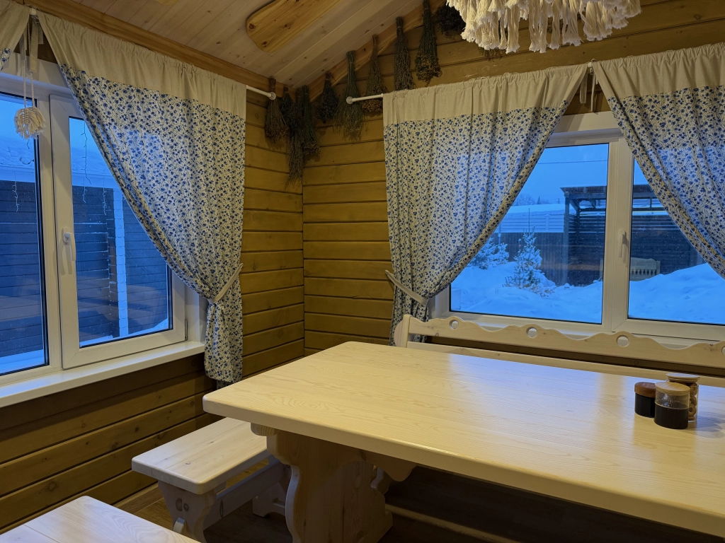 Вчера с женой отметили годовщину в «Избе сказителя». Забронировали на вечер только для двоих — и это было лучшее решение. Свет приглушённый, свечи, на стенах герои былин, в парилке веник с запахом луговых трав, а в купели лепестки плавают.